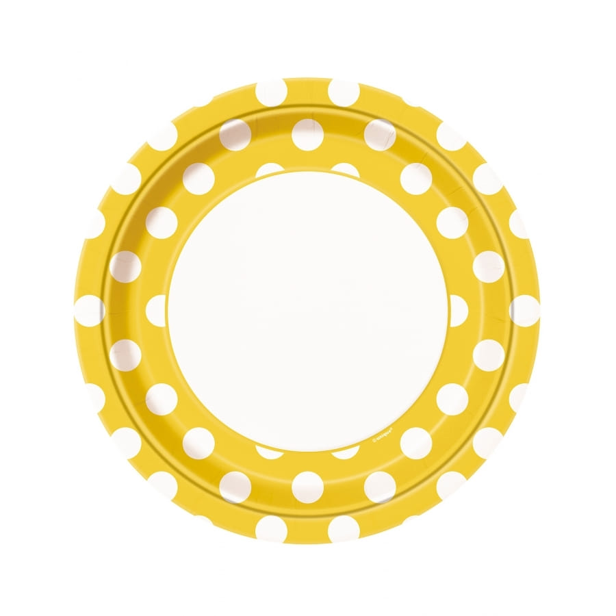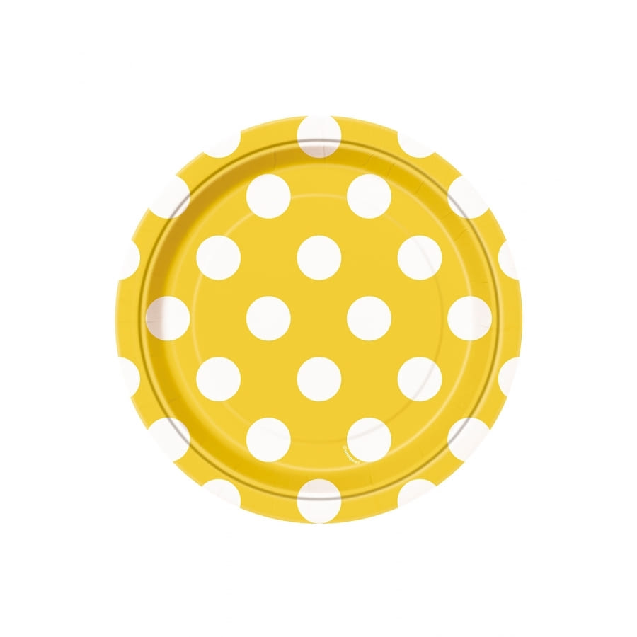 Pendant une prochaine fête d'anniversaire, vous pourrez marquer l'événement par des tons vitaminés en optant pour ces décos anniversaires jaunes à pois blanc.