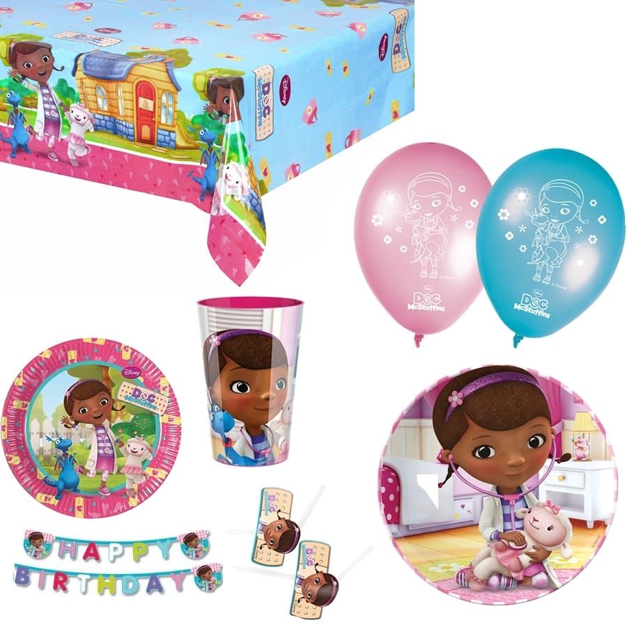 Invitez cette brillante petite fille à un goûter d'anniversaire à travers ces décos docteur la peluche pour table d'anniversaire.