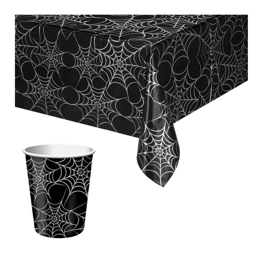 Pour le repas d'halloween, dressez votre table avec ces décos noires imprimées toile pour table d'halloween.