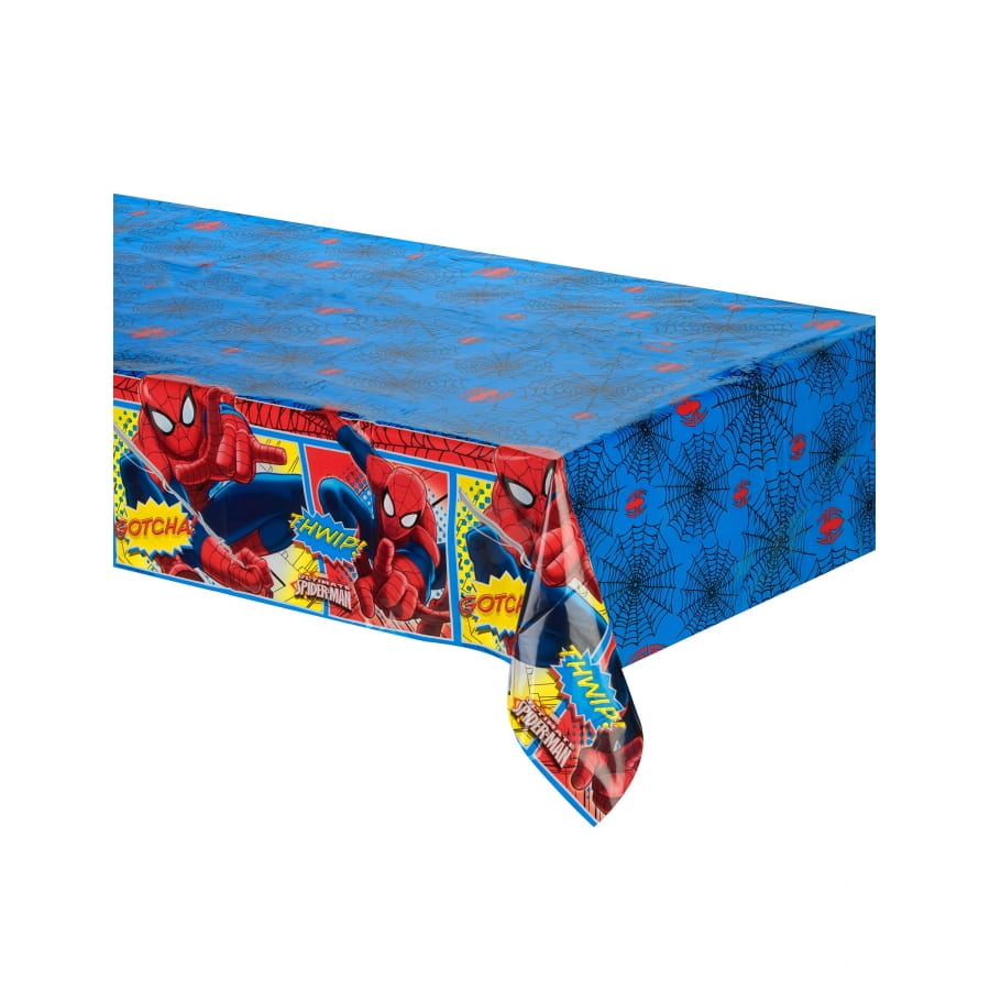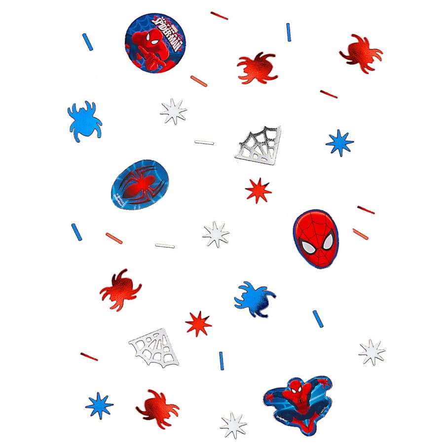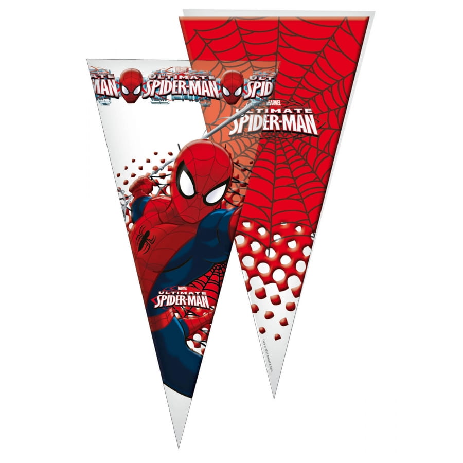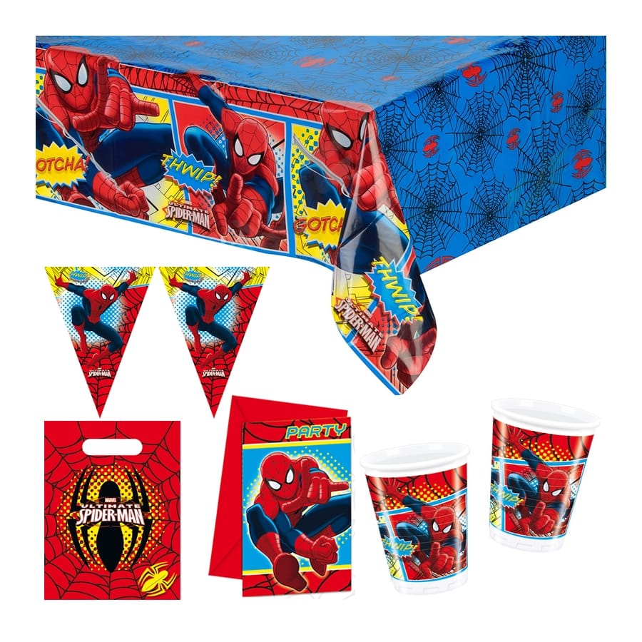 Ce lot de décos Spiderman pour anniversaire est sous licence officielle Spiderman, de couleur rouge et bleue.