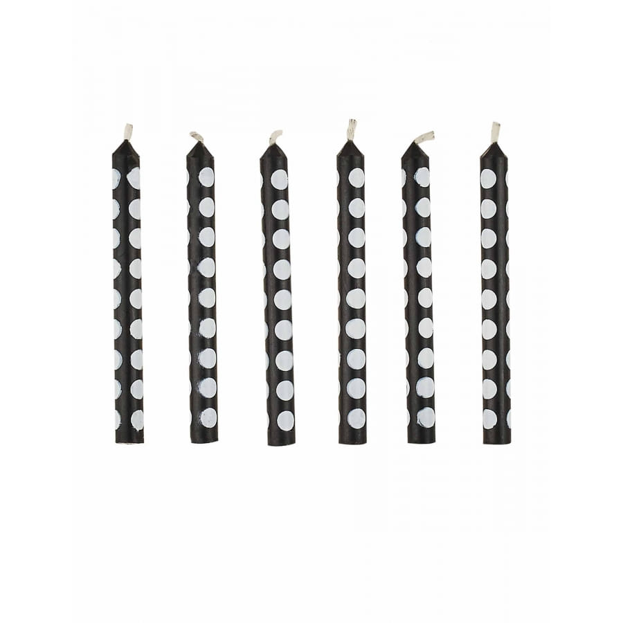 8 assiettes cartonnées noires de 23 cm de diamètre, 16 serviettes en papier de 16,5 x 16,5 cm (pliées), 1 ballon rond en aluminium de 46 cm, 12 bougies noires à pois blancs de 5,5 cm, 8 petites assiettes cartonnées de 18 cm (40 ans, 50ans) 1 guirlande cartonnée de 2,80 mètres de long et 17 cm de haut, 1 centre de table de 30 x 30 cm (en papier alvéolé noir en bas, vignette en carton ronde sur le dessus).