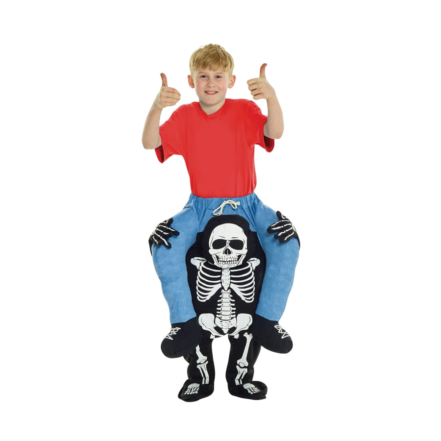 Votre petit garçon ou petite fille a envie d'être drôle pour Halloween ? Déguisement à dos de squelette pour enfant apporte la touche d'amusement qu'il/elle lui faut ! Il s'agit d'une combinaison très particulière qui se présente comme un pantalon noir et blanc doté d'une paire de fausses jambes bleues qui chevauchent un squelette ! Pour enfiler le costume, c'est très simple : votre enfant n'aura qu'à glisser ses jambes dans le squelette. Avec un déguisement aussi original, votre petit bout fera sensation auprès de ses camarades !