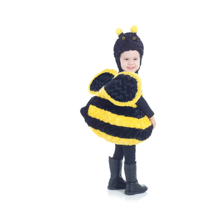 Bienvenue au pays des abeilles... Bzzz Bzzzz ! Ce sublime déguisement d'abeille est à la disposition de tous les petits enfants qui veulent incarner la reine des abeilles ! Celui-ci se compose d'une combinaison rayée de couleur jaune et noire avec une petite paire d'ailes cousues au dos. Une petite partie pointue est également présente au dos pour simuler l'aiguillon dentelé d'une abeille, ce qui donnera plus de réalisme à l'ensemble. La combinaison est munie d'une capuche noire intégrée, avec des petits yeux et surmontée de deux antennes avec des pompons jaunes. Ce costume existe en tailles : 2/4 ans, 18/24 mois et 4/6 ans. Votre bout de chou va voler de fleur en fleur et bondira de joie en portant ce magnifique costume. Ce dernier s'adaptera à de nombreux évènements festifs, déguisés ou à thème.