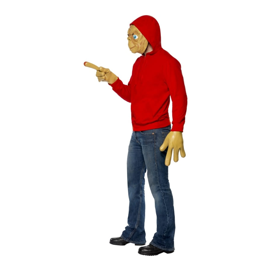 Déguisement d'E.T. adulte, pour homme ou adolescent, composé d'une veste rouge avec capuche, de gants en forme de doigts aliens et d'un masque E.T. Enfilez ce déguisement et essayez une énième fois de "téléphoner maison" à l'occasion d'une soirée spéciale science-fiction.