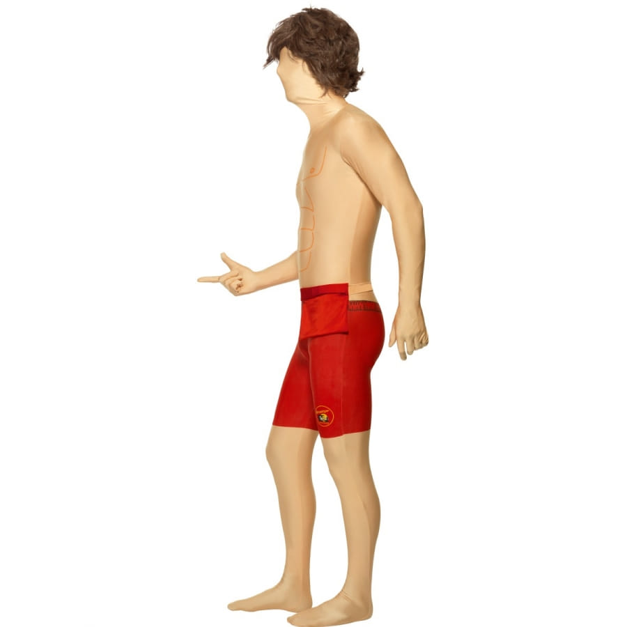 Une combinaison seconde peau de couleur beige et rouge, ce déguisement de seconde peau licence alerte à Malibu couvre complètement le corps, vous pourrez le porter pour un thème comme sport .