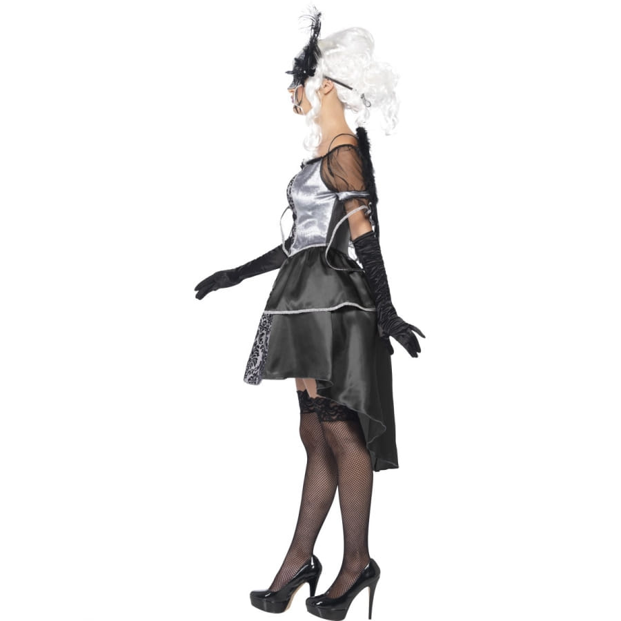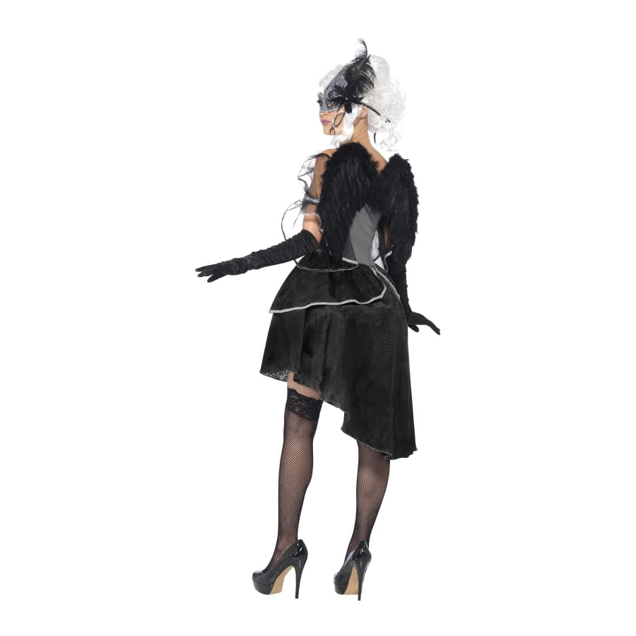 La nuit d'Halloween, tout est permis ou presque... il n'y aucune limite pour avoir le plus beau déguisement. Allez les filles, c'est à nous de mettre un peu de touche de glam à cette nuit unique. Pour nous aider : voici un déguisement ange noir mascarade pour femme. C'est une robe bleue et noire un peu baroque avec des manches transparentes et une petite traîne balai asymétrique à l'arrière. Elle est accompagnée d'une paire d'ailes noires d’ange. Des talons hauts sont de rigueur ainsi que des bas filets noirs. A votre bon plaisir, vous pouvez aussi mettre des gants, une perruque et un masque de carnaval vénitien. Il est disponible en taille S (36-38), M (40-42) et L (44-46). Vous voilà au top pour une longue nuit pleine de magie!