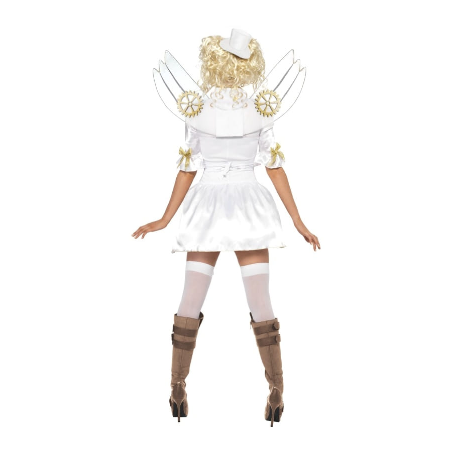 Ce costume est d'ange punk sexy est composé d'une robe courte qui est blanche et dorée, cette robe a des manches mi-longue. Il est aussi composé d'un chapeau blanc et d'une paire d'aile dorée.