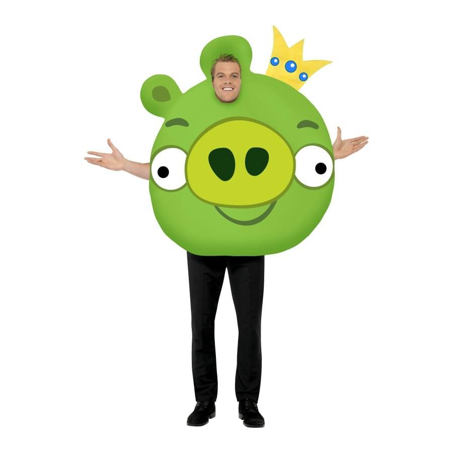 Ce costume est une combinaison de taille M. Vous pourrez le porter pour incarner une mascotte ou encore pour le carnaval. Il est composé d'une combinaison qui représente un cochon de couleur vert avec une couronne dorée et bleu sur la tête. Votre tête sera dans une des oreilles du cochon.
