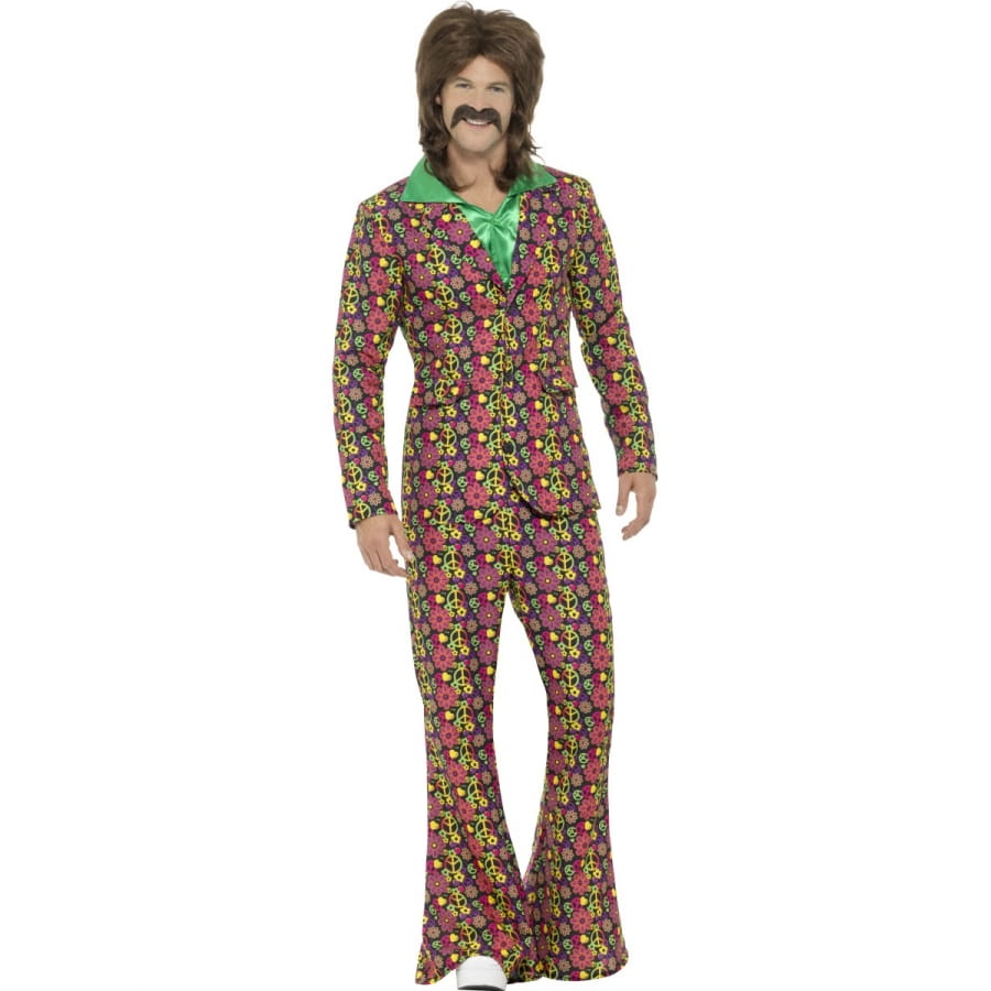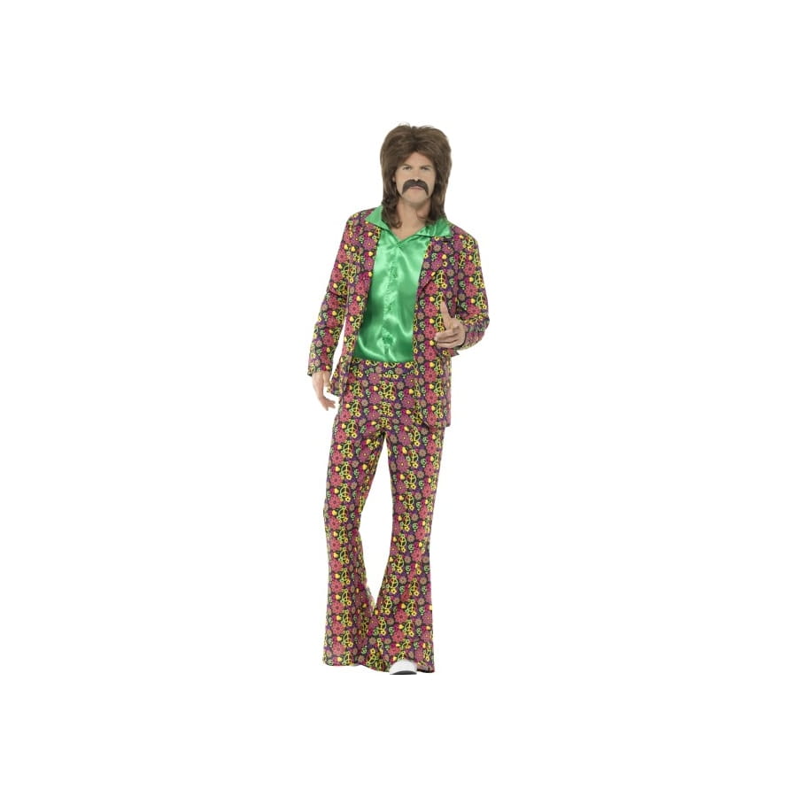 Il y a encore quelques années, le look hippie faisait rage ! Il n'y a rien de mal à remettre ce style vestimentaire à la une le temps d'une soirée costumée. Le déguisement années 60 motifs psychédéliques est destiné à la gente masculine. A la fois cool et classe, ce costume est loin de passer inaperçu. Il est composé d'une veste multicolore à motifs psychédéliques. Retrouvez également un pantalon patte d'éléphant, sur lequel on retrouve les mêmes motifs. Cet ensemble peut être accompagné d'une chemise de couleur vive style années sixties. Pourquoi ne pas rajouter une perruque et des fausses moustaches et vous serez totalement méconnaissable ? Vous trouverez tout cela et bien plus encore sur Happyfete !