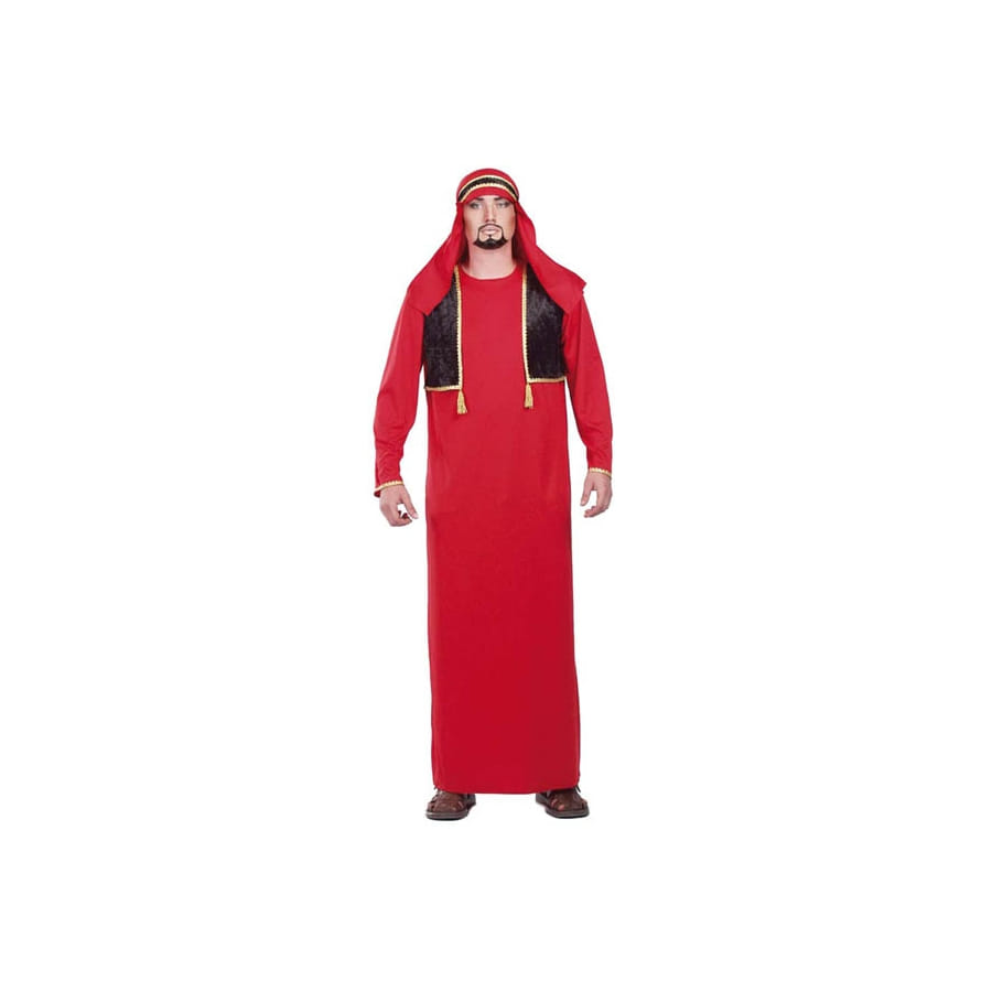 Qui n'a jamais rêvé d'être Roi un jour ? Faites-vous plaisir en vous offrant ce très beau déguisement arabe pour homme de couleur rouge, disponible en taille 54/58. Vous ressemblerez à un riche pétrolier oriental qui donnera l'image d'être à l'abri de tout besoin. Adaptez votre maquillage selon le contexte et jouez le jeu car la robe et la coiffe vous donnera certainement l'apparence et l'allure d'un grand Cheick.