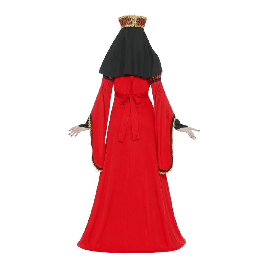 Pour Halloween pourquoi ne pas porter ce déguisement assassin mesdames? Vous pourrez incarner plusieurs personnages dans ce déguisement tel qu'une reine, une sorcière, une magicienne. Ce costume est composé d'un chapeau rouge avec bordures dorée, ainsi qu'un voile noir pour la tête, d'une longue robe manche longue qui est rouge ainsi que d'un poignard.