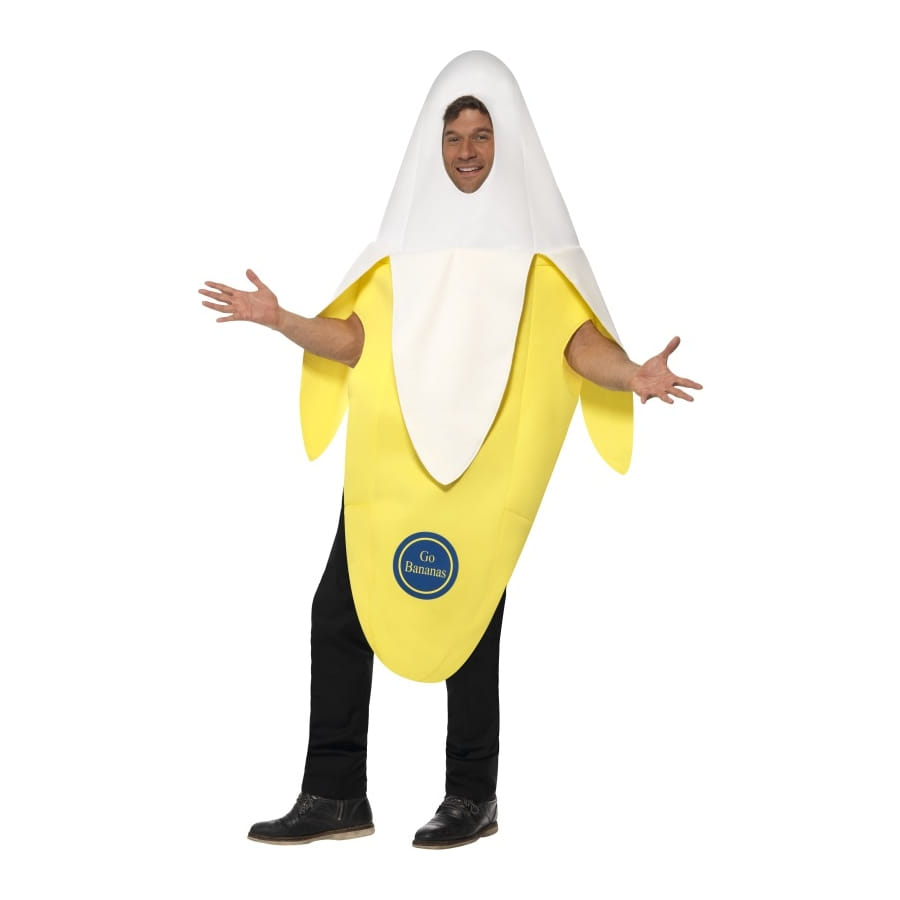 Vous êtes la mascotte d'une équipe pourquoi ne pas vous déguisez en banane ou encore pour une fête sur les fruits et légume. Ce déguisement de banane split est jaune et blanc, avec un effet banane épluchée.