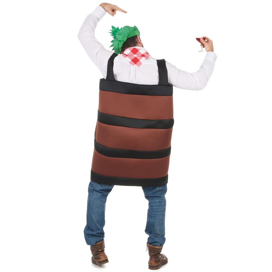 Vous aimez rire et surtout faire rire ? Ce caractère ne sera pas en reste avec ce déguisement baril de vin. Destiné aux hommes, ce costume se compose d'une tunique en mousse marron et noir, en forme de tonneau de vin. Elle recouvre le haut du corps et se maintient grâce à deux bretelles non réglables. Pour agrémenter le côté humoristique, la tenue intègre un robinet blanc situé sur le bas. Enfin, le costume est également proposé avec un béret vert agrémenté de fausses feuilles de vigne sur le haut. Toute le monde appréciera l'aspect très hilarant de ce déguisement. Il conviendra parfaitement pour une foire au vin ou pour un enterrement de vie de garçon.