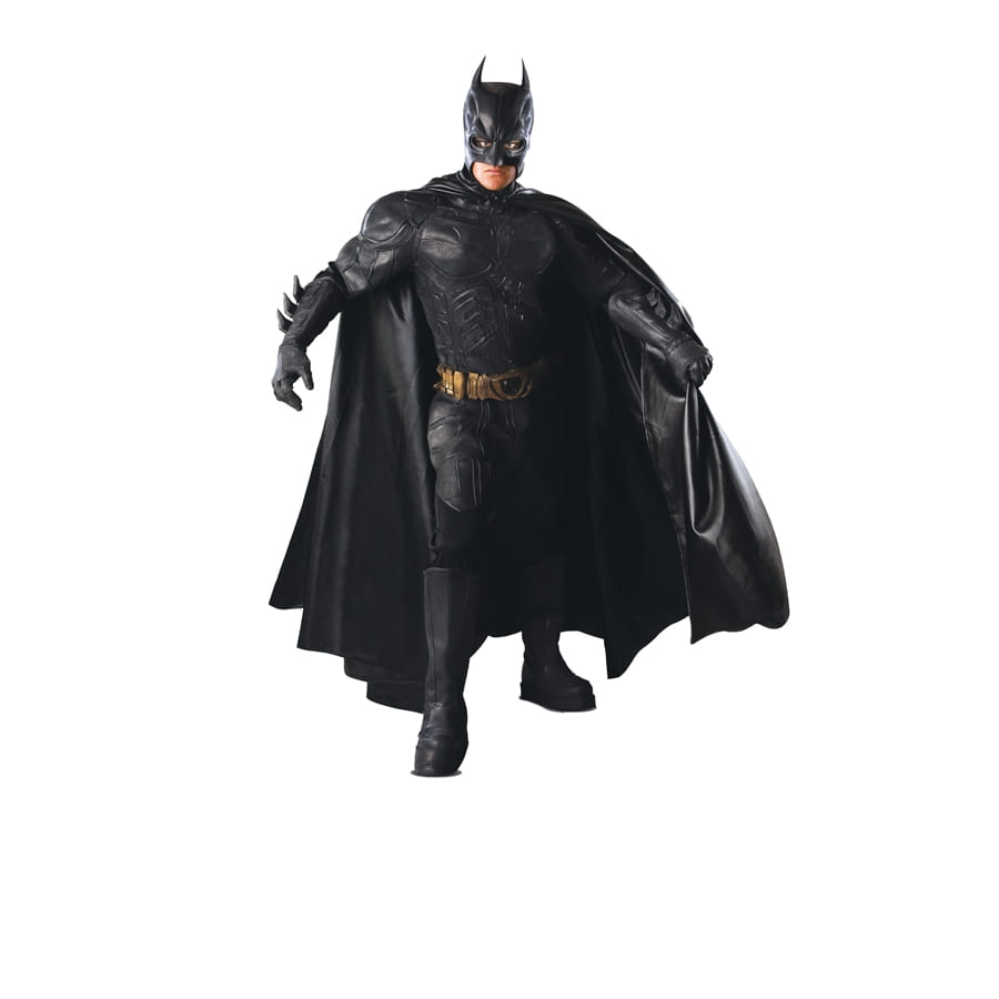 Ce déguisement Batman collector haut de gamme porte bien son nom vu qu'il n'y a pas meilleur déguisement de Batman. De plus, il est moulé en 3D et comprend toute la tenue de Batman c'est-à dire le haut laissant apparaître le dessin de vos muscles, le pantalon moulant, une paire de couvre-bottes, comme cela vous pouvez mettre n'importe lesquelles de vos chaussures noires dessous, une ceinture de couleur dorée, une paire de gants et le fameux masque recouvrant une partie de votre visage avec les oreilles de chauve-souris. Ce déguisement sous licence Batman est entièrement de couleur noire à part la ceinture et est destiné aux hommes.