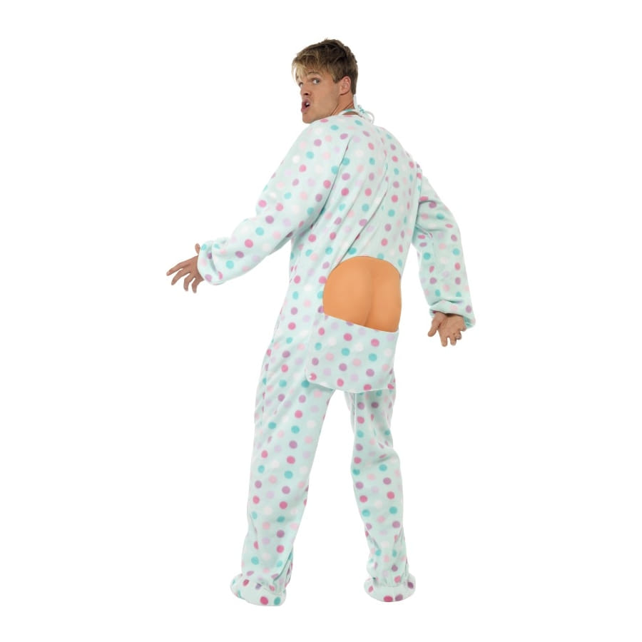 Vous apporterez une dose d'humour a votre fête avec ce déguisement. Vous pourrez le porter pour le carnaval ou un enterrement de vie de garçon. Il est composé d'une combinaison manche longue qui est mulitcolore, d'un couvre chaussure et d'un biberon.