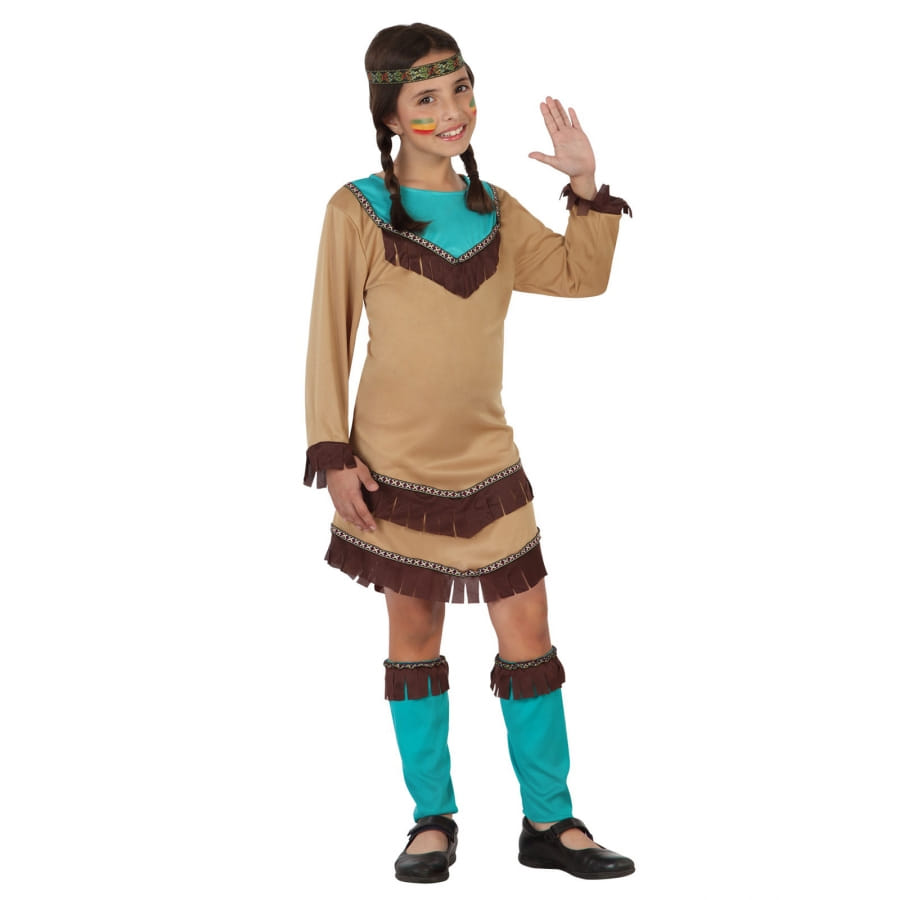 Pendant un événement costumé, transformez votre fillette en une vraie indienne en lui proposant ce déguisement beige et bleu de petite Indienne.