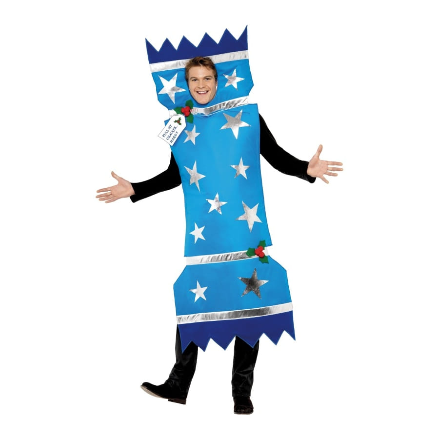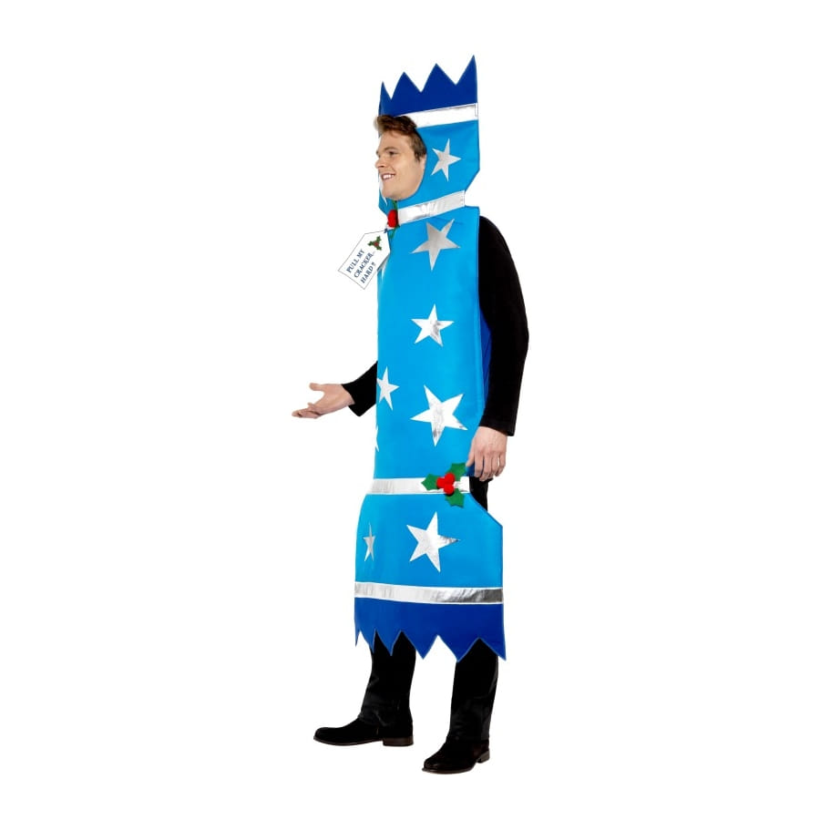 Ce costume de taille M est parfait si vous incarnez une mascotte ou encore pour les fête de fin d'année pourquoi ne pas vous déguisez en biscuit de noël. Ce costume est un tabard de couleur bleu avec bandes et étoiles argenté.