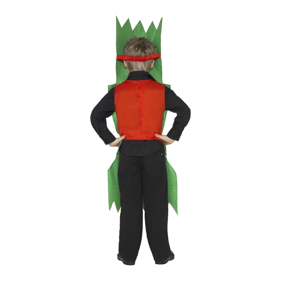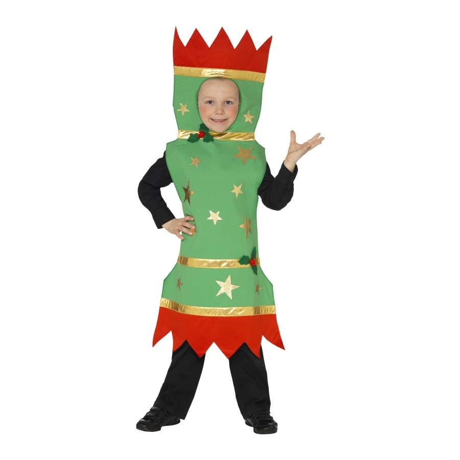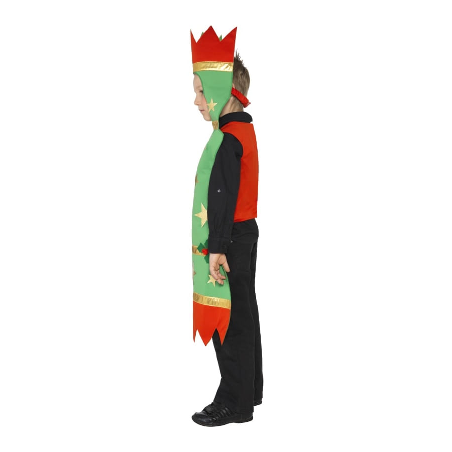 Déguisement de biscuit de Noël, pour enfant, composé d'une combinaison de couleur rouge et verte avec des étoiles et des bandes dorées. Ce déguisement original et rigolo est disponible en taille S, M ou L. Votre enfant sera mignon à croquer à l'occasion de Noël!