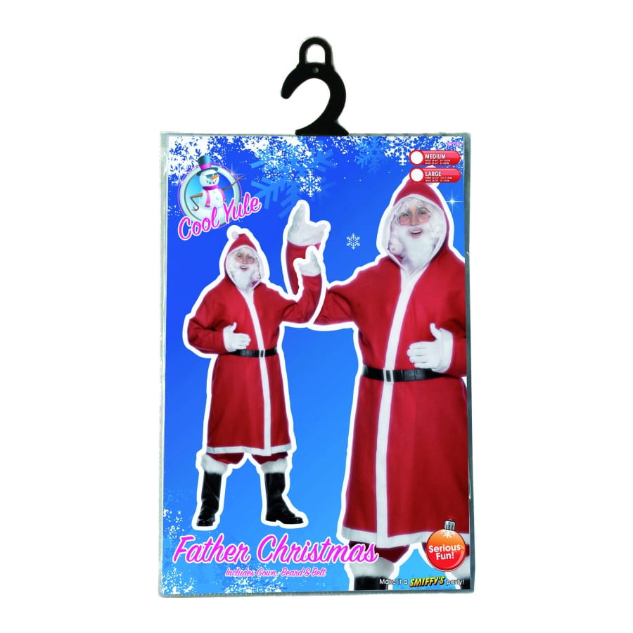 Un déguisement de père noël qui est composé d'une robe , d'une barbe et d'une ceinture. Ce déguisement vous pourrez le porter pour la noël et faire plaisir aux enfants ou encore pour le carnaval. De taille L il est de couleur blanc, noir et rouge.