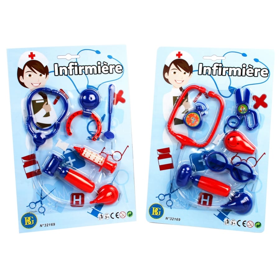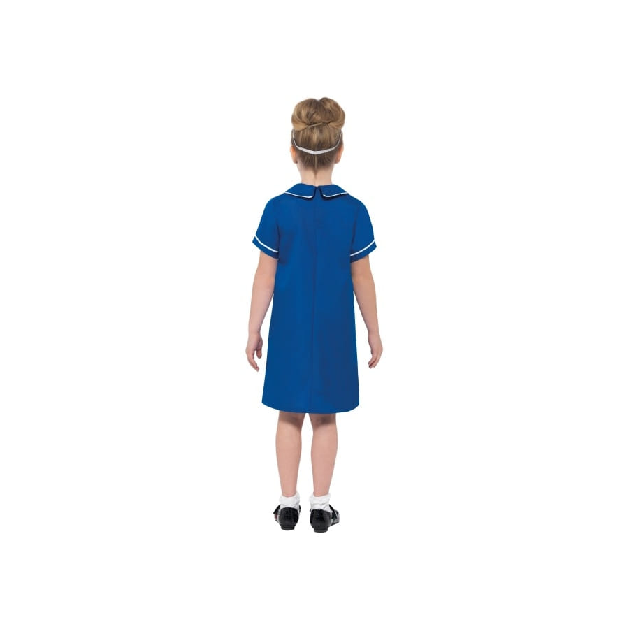 Voilà un métier qui fait rêver les petites filles : celui d'infirmière. Pour les aider à plonger dans ce rôle, offrez leur ce joli déguisement bleu d'infirmière pour enfant. Il est composé d'une robe mi-longue entièrement bleue à manches courtes et recouvert, sur le devant, d'un tablier blanc cousu. Sur ce tablier sont dessinés quelques outils de médecine ainsi qu'une poche et la fameuse croix rouge et blanche. Une petite coiffe blanche d'infirmière, elle aussi décorée d'une croix, vient compléter l'ensemble. N'hésitez pas à compléter ce déguisement en choisissant quelques jouets d'infirmière, comme un faux stéthoscope ou une fausse seringue. Ce sont ces petits accessoires qui permettront à votre enfant de rentrer dans la peau d'une véritable aide soignante.