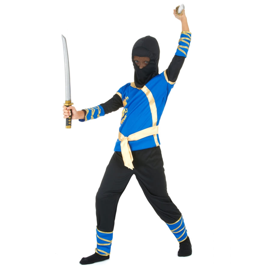 Incarnez la force et l'agilité du ninja à l'aide de ce Déguisement bleu et doré de ninja pour enfant.