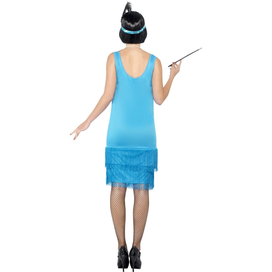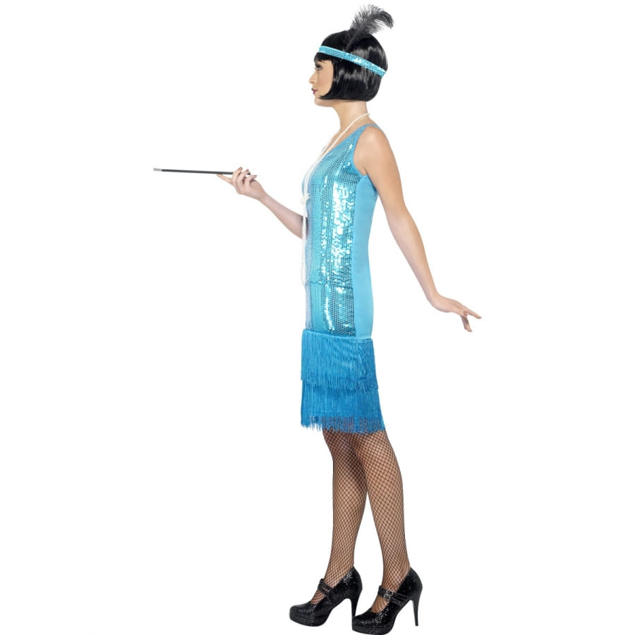 Ce magnifique déguisement de jeune fille délurée vous ira parfaitement si vous partez a une fête ayant pour thème années 20. Ce déguisement est composé d'une robe bleu sans manche avec des brillants sur la robe, d'un collier blanc et d'un bandeau bleu et d'une plume. Vous serez une très belle danseuse dans ce déguisement.