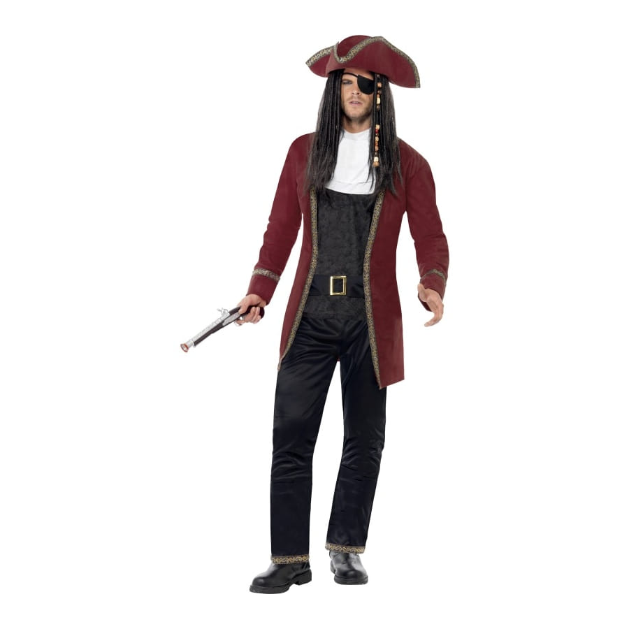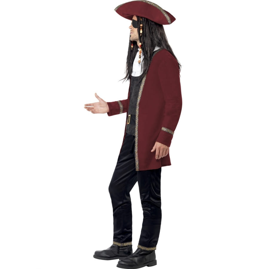 Ce déguisement de capitaine pirate vous pourrez le porter pour une fête ayant pour thème piraterie et corsaire ou encore action et aventure. Ce déguisement de capitaine pirate est composé d'une veste de couleur marron, d'un pantalon noir, d'un chapeau marron et d'un cache œil de couleur noir.