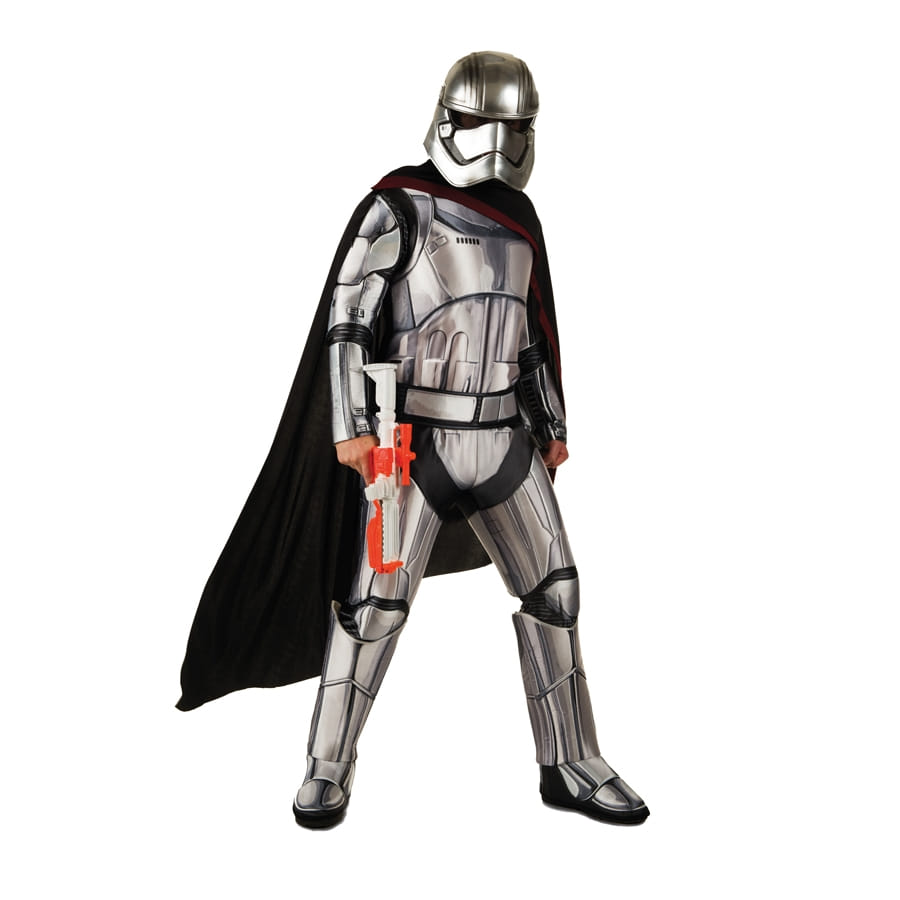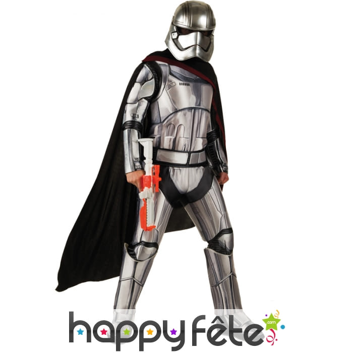 Incarnez le Captain (capitaine) Phasma avec ce déguisement en version luxe pour adulte. Il est composé d'une combinaison rembourrée effet métal avec cape noire. Une ceinture imprimée ainsi qu'un masque en pvc viennent peaufiner l'ensemble. Le pistolet présenté sur la photo n'est pas livré avec le déguisement.