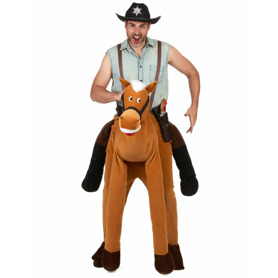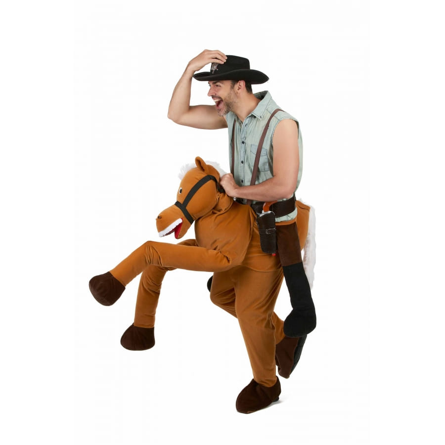Le déguisement carry me à dos de cheval pour adulte est un pantalon à bretelles.