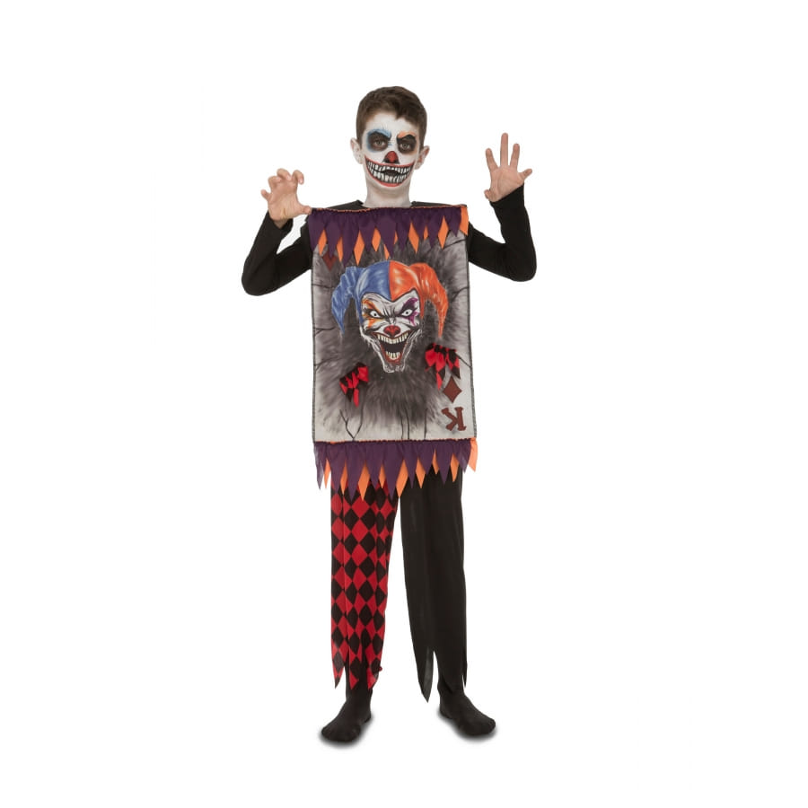 Le déguisement carte de joker sinistre pour enfant est destiné aux garçons.