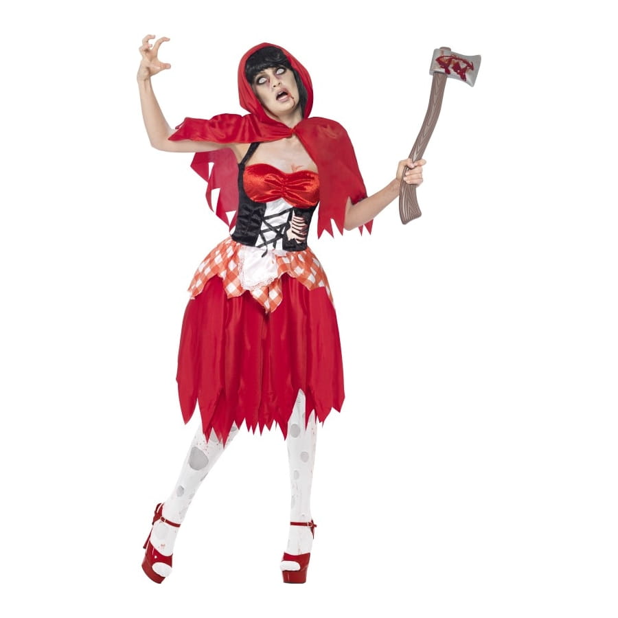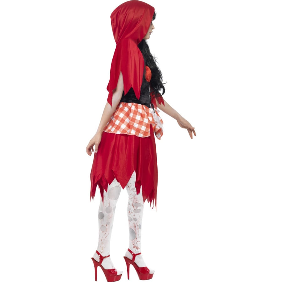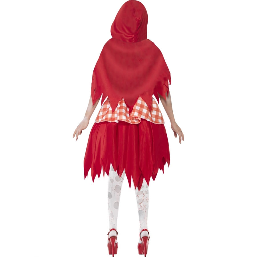 Le petit chaperon rouge nous a toujours paru très mystérieux. Elle va toute seule dans une forêt, sans une grande personne pour l'accompagner. Elle parle à des loups ... Tout cela nous fait réfléchir : et si le Chaperon rouge était un zombie? Un zombie pourrait parler à des loups, se promènerait tout seul dans la forêt, caché de tous. C’est pour cela que nous avons conçu ce costume pour femme, Chaperon rouge zombie, sous licence Disney. Il a été fait avec une robe en rouge au niveau de la poitrine, noir et blanc pour le reste du haut de la robe, pour le bas, nous avons un rouge vif au-dessus duquel il y a un petit tablier en carreaux rouge et blanc déchiré, sans oublier bien sûr la capuche rouge avec une partie en lambeau. Les tailles disponibles sont : S (robe taille 36-38), M (robe taille 40-42), L (robe taille 44-46). Nettoyage à sec uniquement.