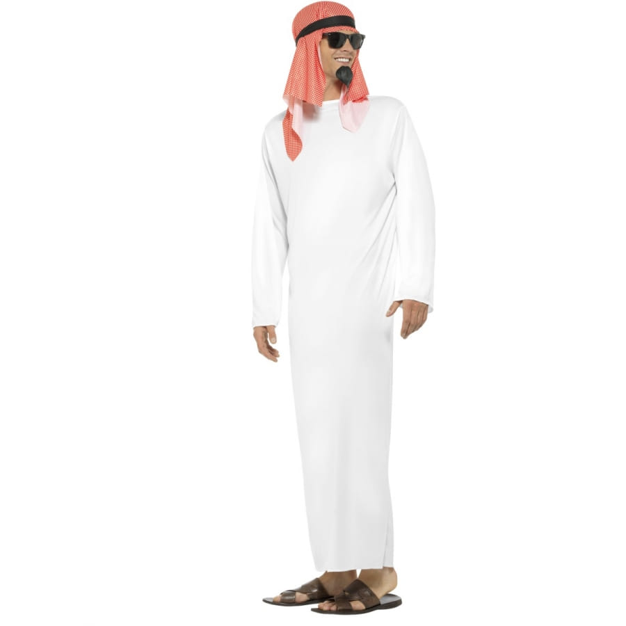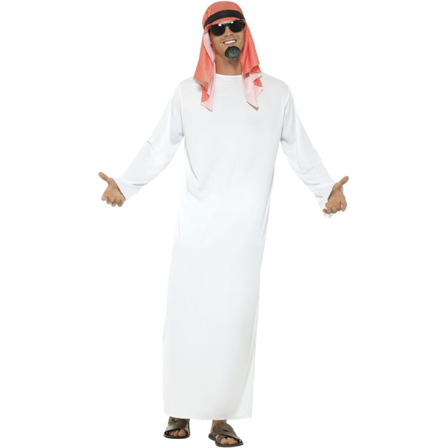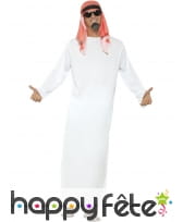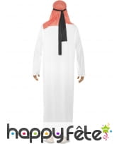 Déguisement de cheikh, pour homme, composé d'une longue tunique blanche et d'une foulard rouge pour la tête. Choisissez entre les tailles S, M ou L au moment de votre commande. Ce déguisement est parfait pour une fête orientale.
