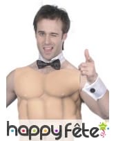 Pour la saint valentin ou le carnaval pourquoi ne pas vous déguisez en chippendale. Ou pour un enterrement de vie de jeune fille ou pour fêter la fin du célibataire. Ce déguisement est composé d'un nœud en papillon de couleur noir et blanc ainsi que des manchettes de couleur blanc et noir.
