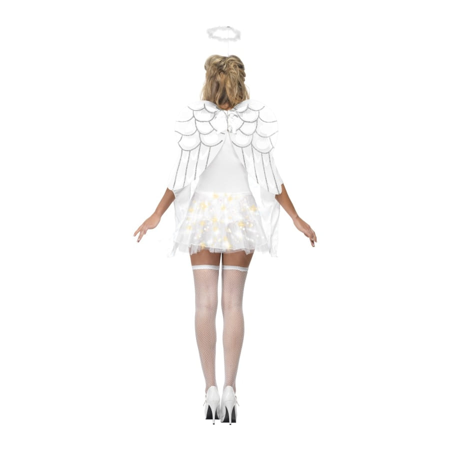 Un déguisement d'ange du ciel, vous pourrez vous en servir pour le carnaval ou encore la noël. Vous pourrez aussi le porter pour une fête basée sur le charme. Vous serez toute belle dans ce déguisement qui est composé d'une robe manche mi longue , la robe est courte avec des voile au bas, il est aussi composé d'une auréole et une paire d'aile.