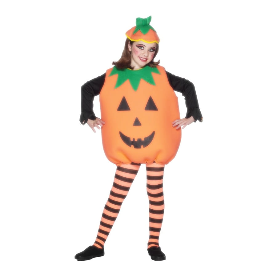 Déguisement de citrouille de couleur orange et noire, pour enfants, composé d'une combinaison avec visage de citrouille et d'un chapeau en forme de haut de citrouille découpé. Cet ensemble ultra mignon sera parfait pour Halloween.