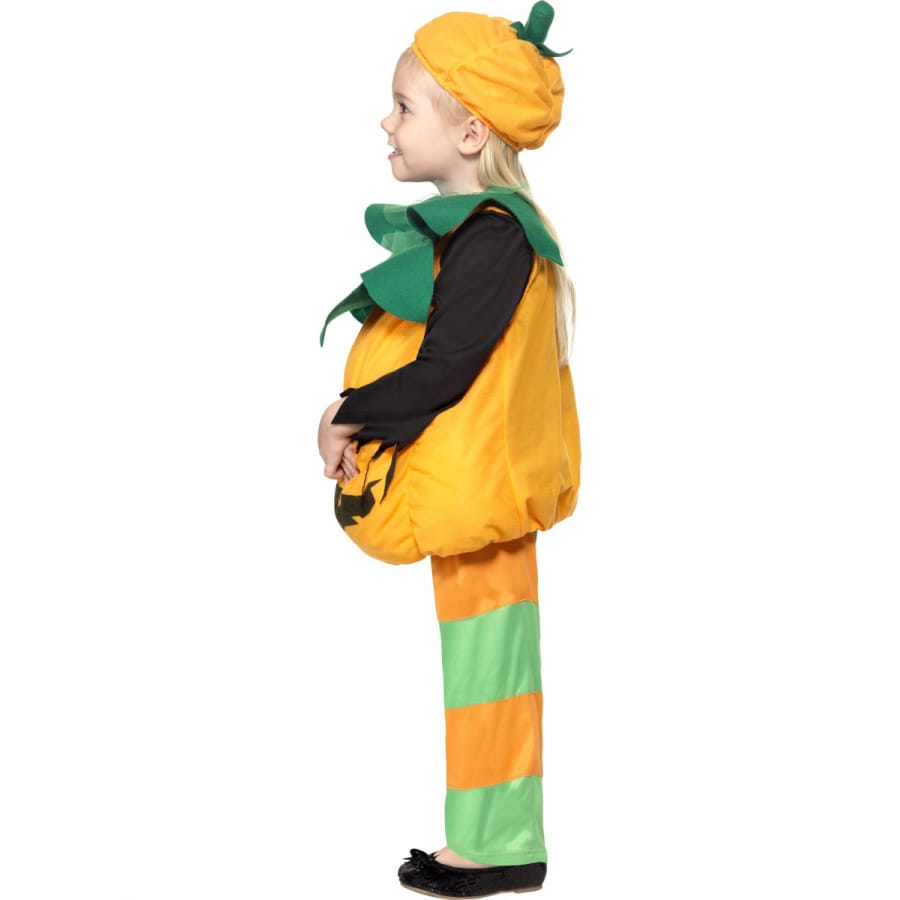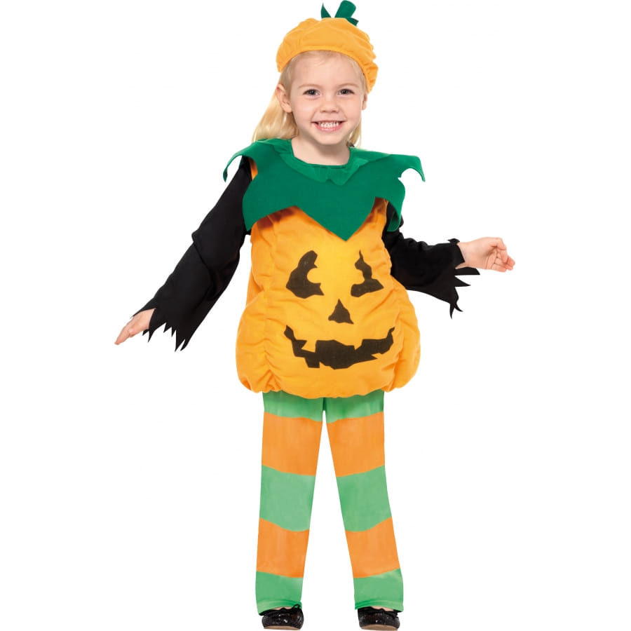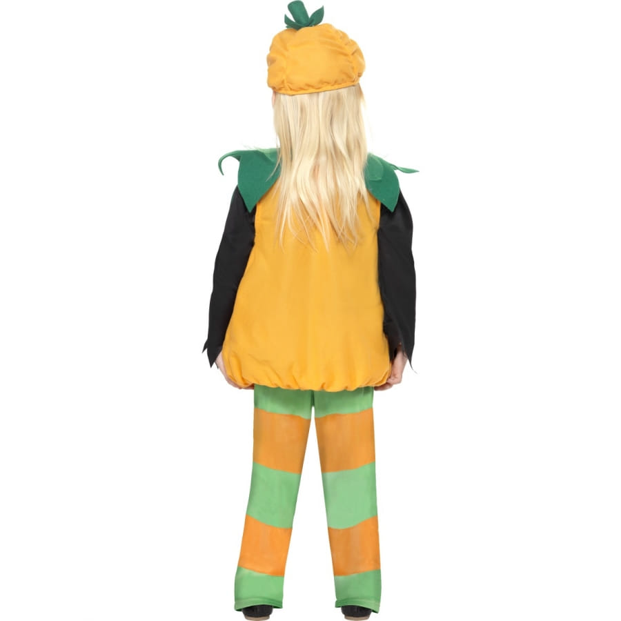 Elle sera la plus mignonne de toute dans ce déguisement. Ce costume mini monstre petite citrouille, de taille 3 à 4ans, elle pourra le porter pour Halloween ou même un goûter d'anniversaire. Il est composé d'une tunique orange avec un visage dessus, le col est vert. D'un pantalon orange et vert ainsi que d'une coiffe orange et verte.