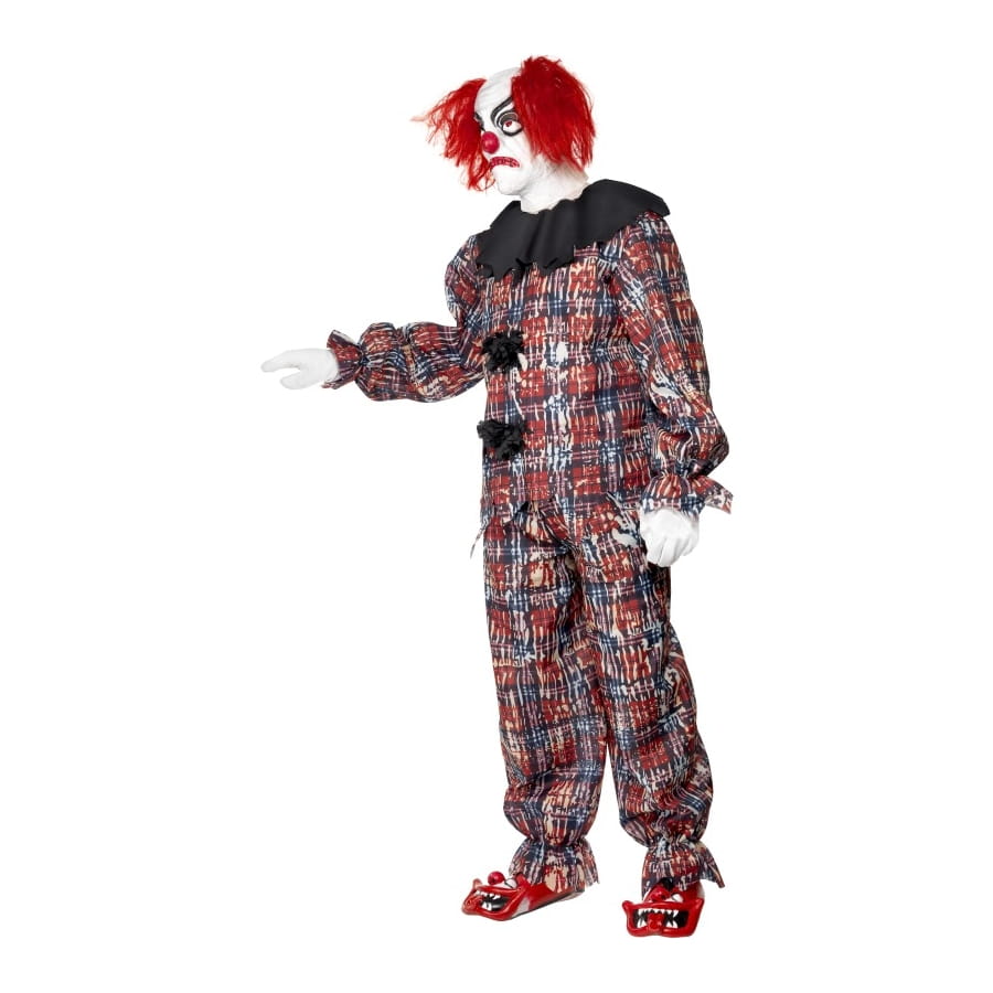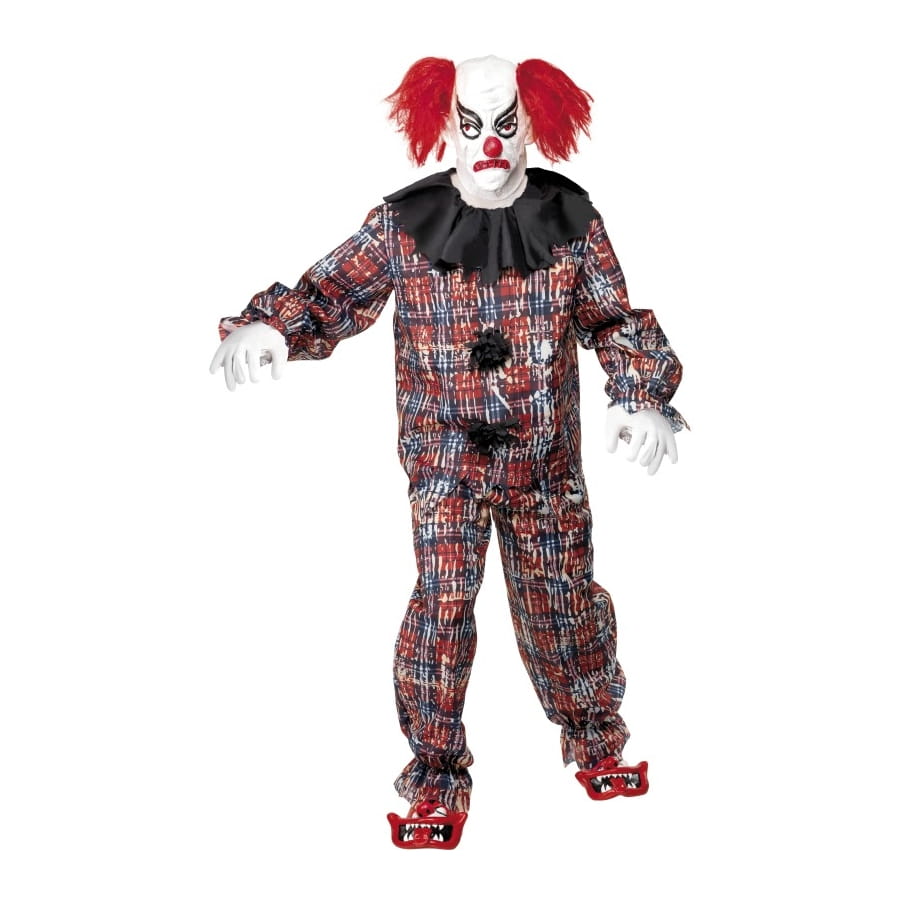 Déguisement de clown pour Halloween, pour homme, composé d'un top, d'un pantalon, d'un masque, de chaussures et de gants. L'ensemble est multicolore et disponible en taille S, M ou L. Faites peur aux plus petits avec ce déguisement de clown effrayant!
