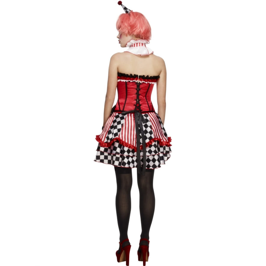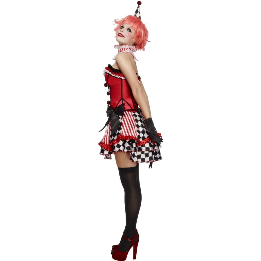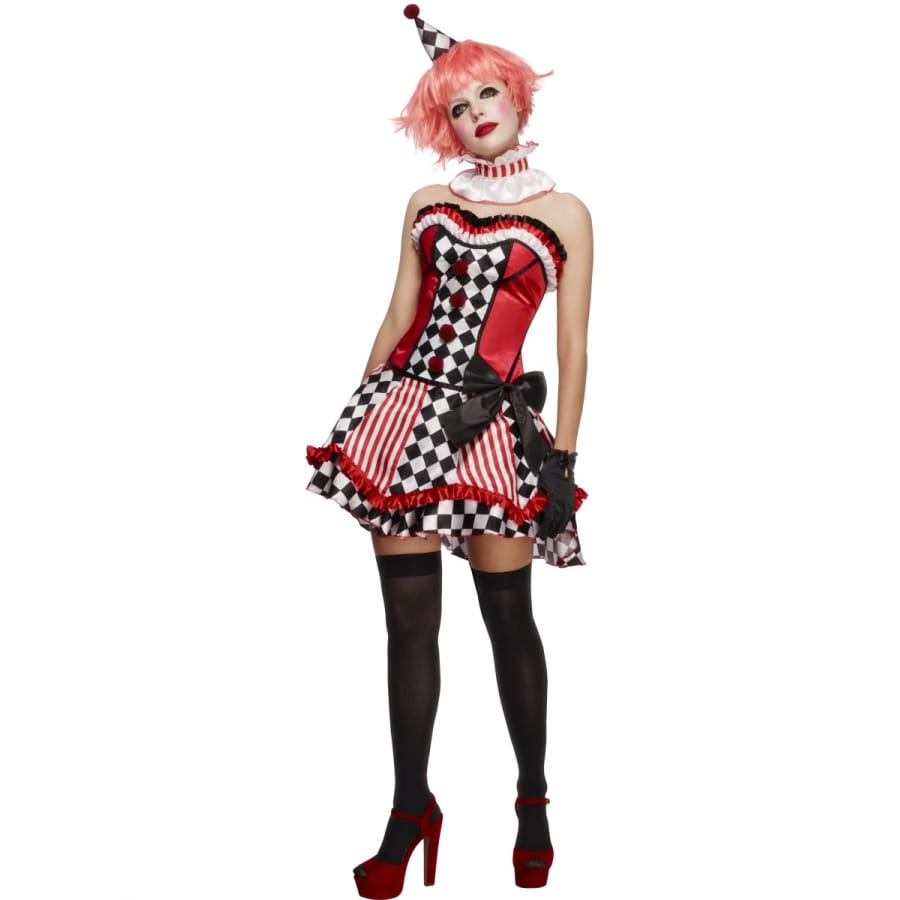 Un peu d'humour dans la vie, ce n'est jamais de refus ! Pour la Saint-Valentin, osez porter un somptueux costume de clown. Ne vous inquiétez pas, celui-ci est loin des déguisements de clown plutôt rigolo et ridicules. Il est à la fois sexy et élégant. Il est formé d'une mini-jupe et d'un corset sans manches, de couleur rouge, noire et blanche, avec les motifs d'un échiquier. Un collier blanc est fourni avec l'ensemble, ainsi qu'un petit chapeau en forme de cornet. Pour plus de charme, enfilez des bas transparents dans le style charleston ainsi que des gants noirs, et portez des talons hauts pour mettre en valeur votre silhouette ! Ce déguisement est proposé en taille L (44-46) M (36-38). Alors décidée!? Soyez certaine qu'il n'existera aucun clown aussi sexy que vous !