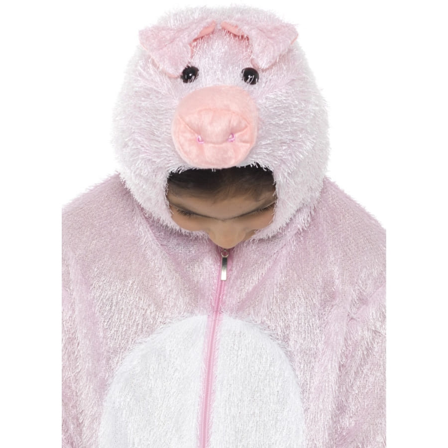 Un déguisement de cochon sera parfait pour le carnaval. Votre enfant sera tout mignon dans ce déguisement. De couleur rose avec un cercle blanc sur le ventre, il y a une fermeture éclaire sur le devant du déguisement avec un capuchon en forme de la tête du cochon.