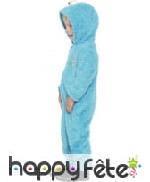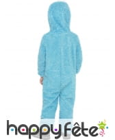 Les tout petits aussi ont droit à leur Halloween, aux friandises et aux déguisements. Mais pour ce dernier côté, ne leur choisissez pas quelque chose de trop effrayant, le mieux étant un costume tout directement sorti de leur imagination, ou bien de ces films animés qu'ils aiment tant. Nous avons par exemple ce déguisement Cookie Monster pour petit garçon, sous licence Sesame Street. C'est une combinaison bleue avec fermeture sur le devant. Elle est munie d'une capuche avec les yeux rigolos de Macaron. Ils le connaissent très bien : c’est le célèbre monstre bleu mangeur de biscuit. Si avant vous trouviez votre garçon trop mignon, désormais il sera en un mot, 8 lettres : A.D.O.R.A.B.L.E!!! Ce costume est disponible en taille T2(3-4 ans) et S(4-6 ans). Son nettoyage se fait uniquement à sec.