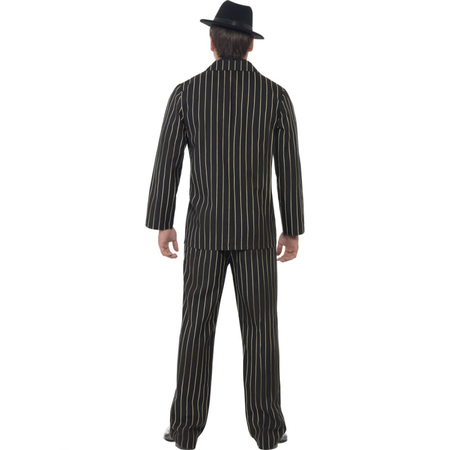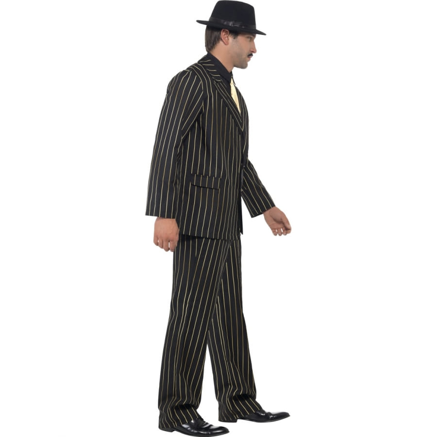 Pour incarner un gangster il vous faut ce déguisement de gangster. Il est composé d'un pantalon noir avec des rayures blanches, d'une veste noire avec rayure blanche, d'une fausse chemise noire avec cravate doré. Ce déguisement vous pourrez aussi le porter pour une fête ayant pour thème aventure.