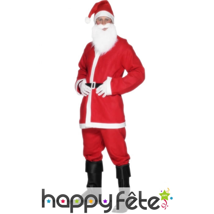 Ce costume de père noël est excellent pour ceux qui souhaite faire une belle surprise aux enfants pour la noël. Vous serez un gentil père noël dans ce déguisement qui est composé du chapeau rouge et blanc, d'une barbe blanche, d'une veste rouge et blanche et d'un pantalon rouge.