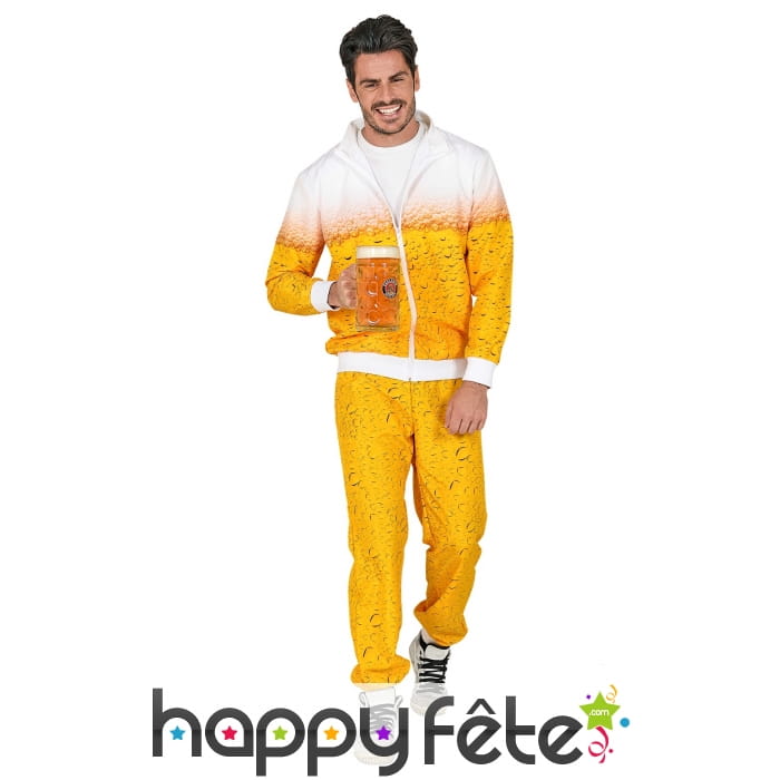 La partie supérieure de la veste est blanche pour imiter la mousse de la bière.