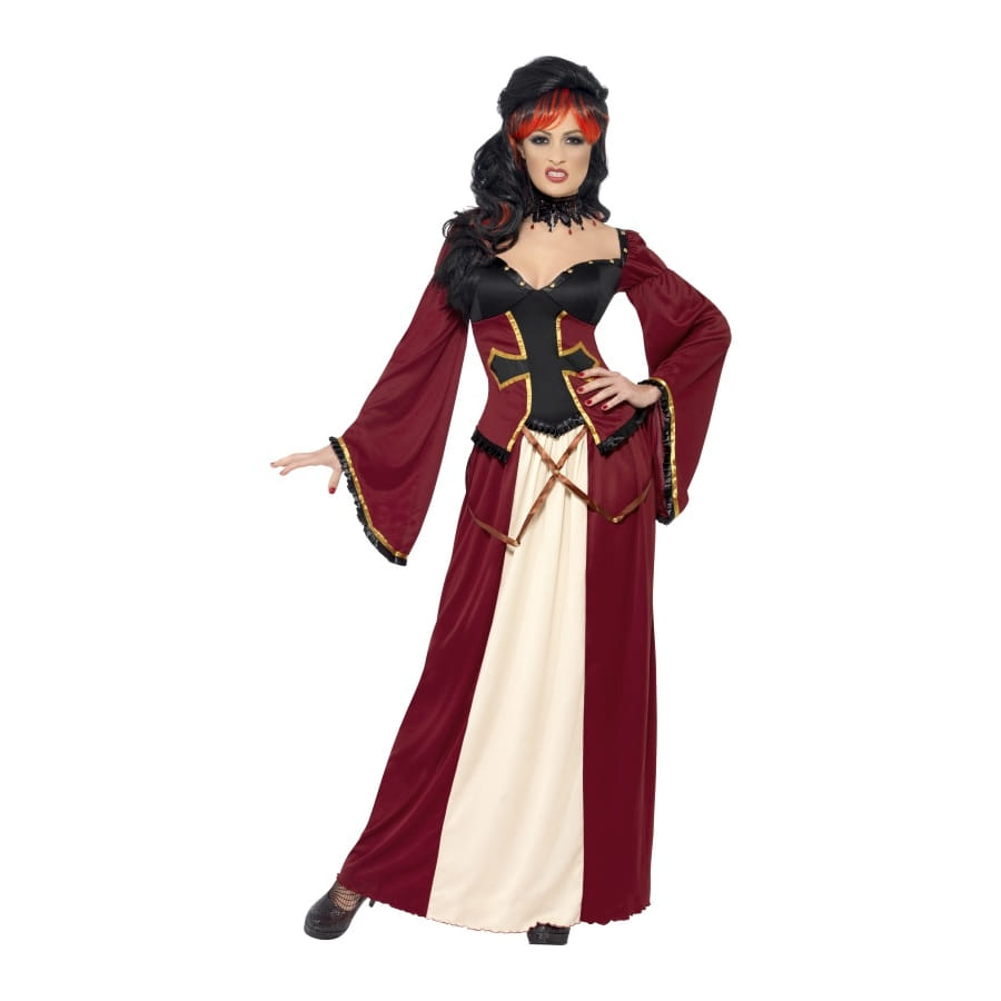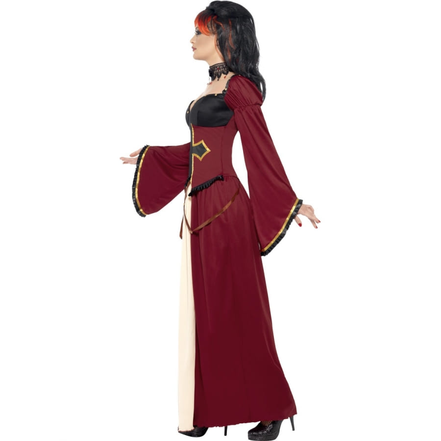 Pour Halloween vous pourrez porter cette magnifique robe. Cette jolie robe vous pourrez aussi le porter pour le carnaval ou une soirée gothique. Ce déguisement est composé d'une robe avec faux corset , elle est de couleur bordeaux, beige, doré.