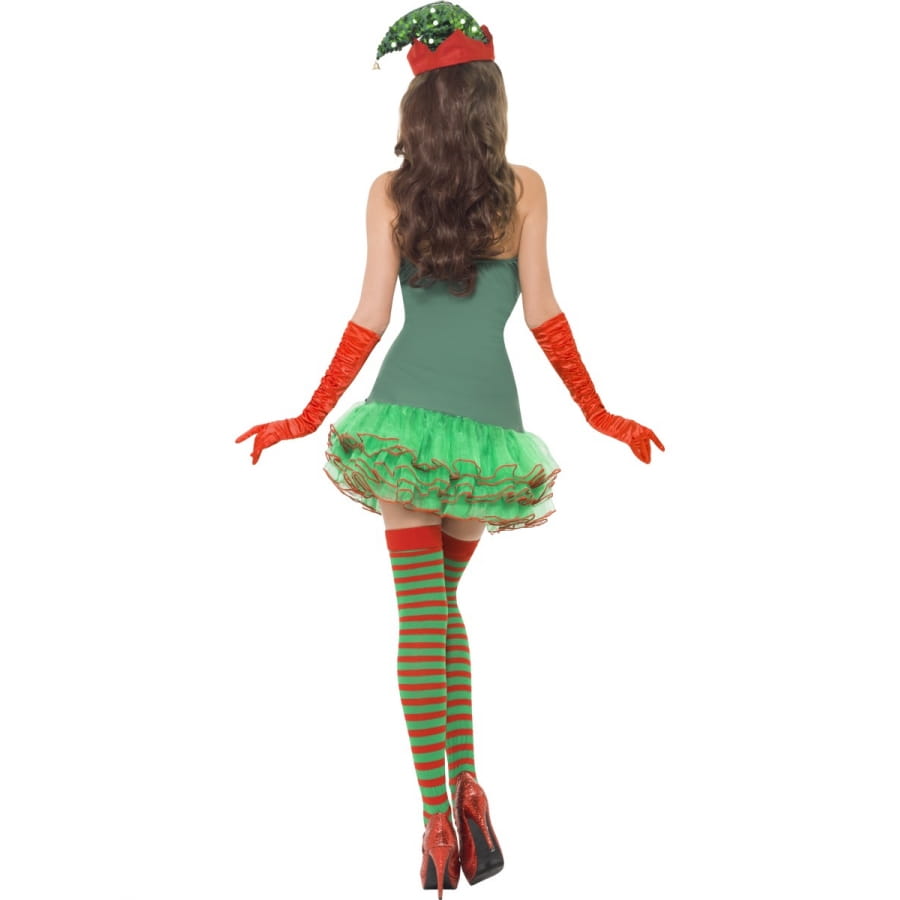 Déguisez-vous en elfe de Père Noël avec ce sublime ensemble à paillettes. Composé d'une robe tutu, de bretelles amovibles et d'un chapeau d'elfe à grelot, cet ensemble est de couler rouge et verte. Il est disponible en taille XS, S ou M. Il représente parfaitement l'esprit de Noël en version féminine et sexy.