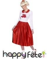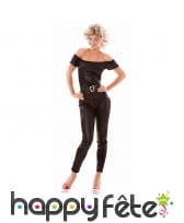 Vous avez sûrement vu la sulfureuse Cha Cha Digregorio dans le film Grease, et la voici sur Happyfete, du moins sa tenue la plus célèbre du film. Ce déguisement de cha cha digregorio, Grease sera un succès, car qui n'aimerait pas être la plus belle et la meilleure danseuse du lycée ? Ce déguisement comprend une robe avec une bretelle autour du cou, laissant votre dos à découvert, avec un bustier de couleur bleue, et le reste de couleur noire avec des petites fleurs partout. Il ne faut pas oublier la barrette, de la même couleur bleue et du même tissu que le bustier de la robe.