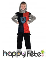 Les petits intrépides ne se feront pas prier pour jouer le rôle du vaillant chevalier. Ce déguisement de chevalier médiéval gris pour enfant représente à la perfection l'ordre de la chevalerie du Moyen Age. Votre enfant portera ainsi une tunique de couleur gris foncé avec un écusson cousu au niveau de la poitrine. Elle est dotée de longues manches en imitation cotte de maille, ainsi que d'épaulettes noires en feutrine. Une ceinture noire est fournie avec la tunique, ainsi qu'une cagoule de couleur grise. L'ensemble se porte idéalement avec un pantalon noir classique. L'article est décliné en plusieurs tailles pour les petits garçons de 4 à 12 ans. La victoire est désormais à portée de main !