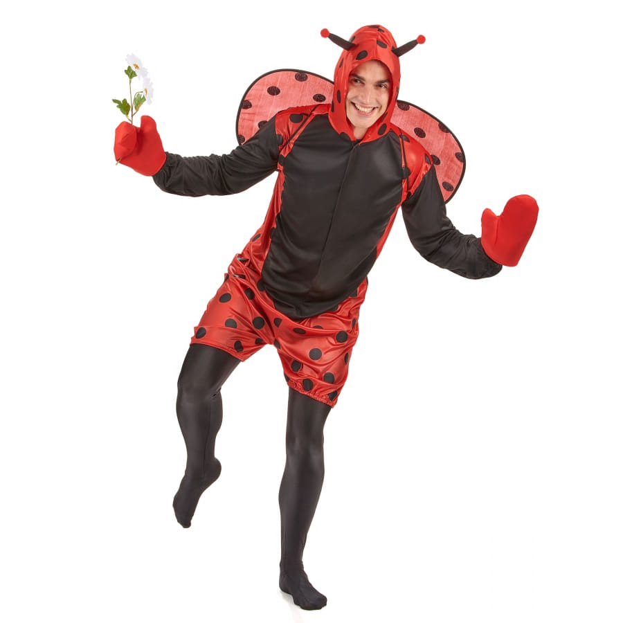 En général, la coccinelle est considérée comme un animal porte bonheur. Cette fois-ci, elle va diffuser rires, joie et bonne humeur à travers ce déguisement de coccinelle pour homme. Idéale pour divertir vos amis lors d'un enterrement de vie de célibataire, cette tenue insolite vous habillera en coccinelle des pieds à la tête. Elle est principalement constituée par une combinaison courte à manches longues, de couleur noire et rouge, avec des motifs pois noirs par dessus le fond rouge. Elle se ferme à l'aide d'un scratch sur le devant. La capuche est munie de deux petites antennes. Une paire de moufles rouges vous est fournie pour bien recouvrir vos mains. Et pour finir, vous aurez droit à une paire d'ailes rouges à pois noirs. L'accessoire comporte deux lanières élastiques à enfiler comme un sac à dos. Apprêtez-vous maintenant à ce que vos amis éclatent de rire en vous voyant !