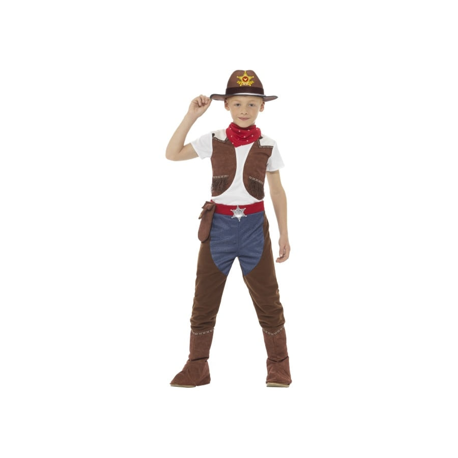 Les enfants ne se lasseront jamais d'incarner le rôle du brave cowboy du Far West. Comme dans un western, ils vont pouvoir démontrer leur courage ou même faire justice en se faufilant dans la peau d'un shérif. Pour cela, vous ne trouverez pas plus sympa que ce déguisement de cowboy à chaps pour enfant. Il s'agit d'un ensemble intégral de couleur marron, destiné aux petits garçons intrépides. Il est composé d'un pantalon marron équipé d'une petite poche pour ranger un revolver. Le haut est de couleur blanche avec un motif de gilet marron intégré. Un foulard rouge est aussi fourni pour être attaché autour du cou. Ce déguisement est disponible en plusieurs tailles pour les 4 à 12 ans.