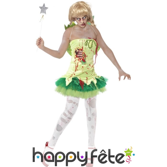 Votre costume sera constitué d'une mini-robe à tutu, en latex, de couleur verte et tachée de sang.